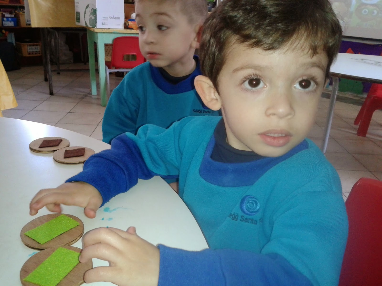 ·         Learn through touch.  Cut shapes—circle, square, triangle—out of sturdy cardboard.  Let your child touch the shape with her eyes open and then closed.